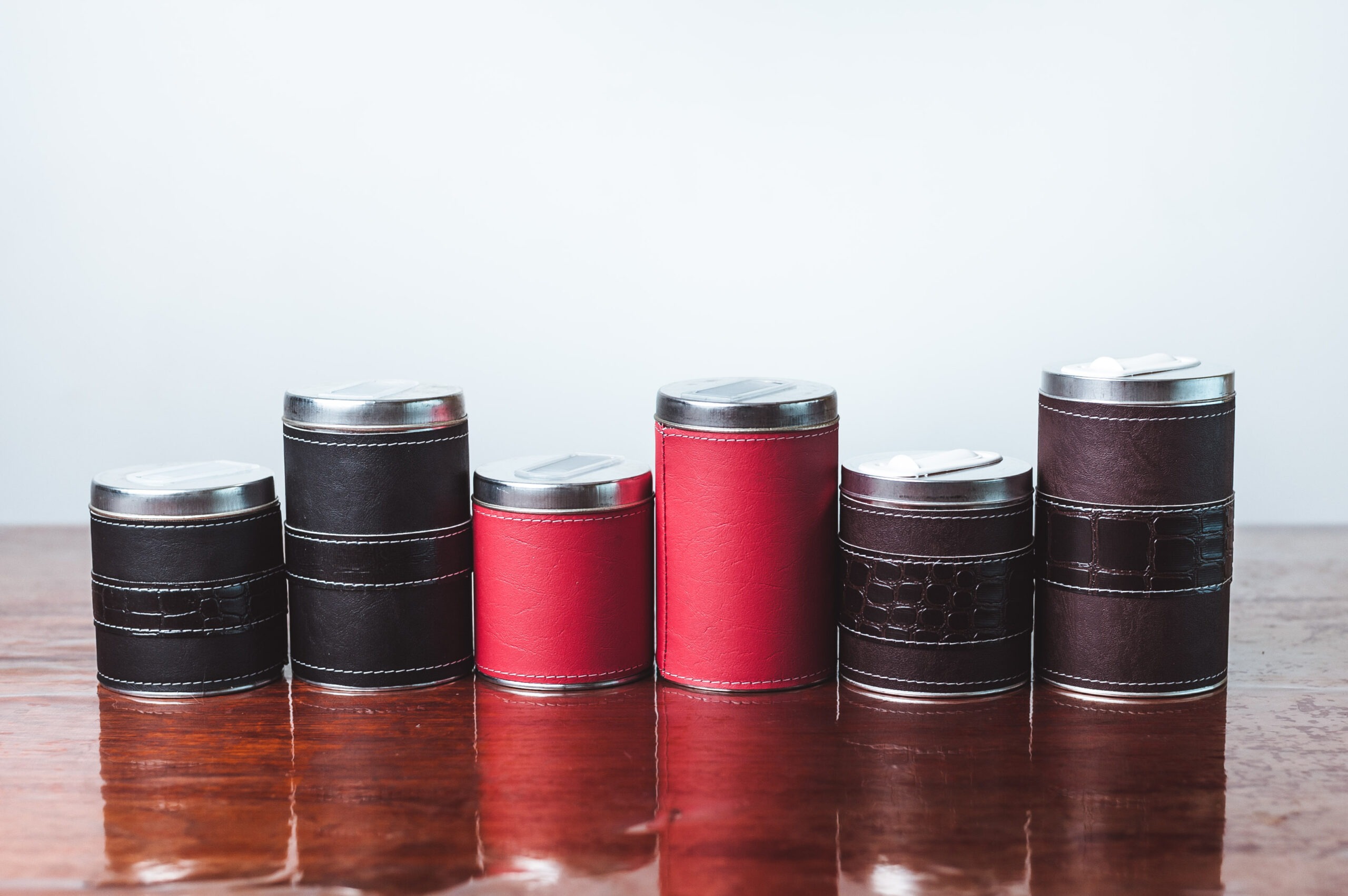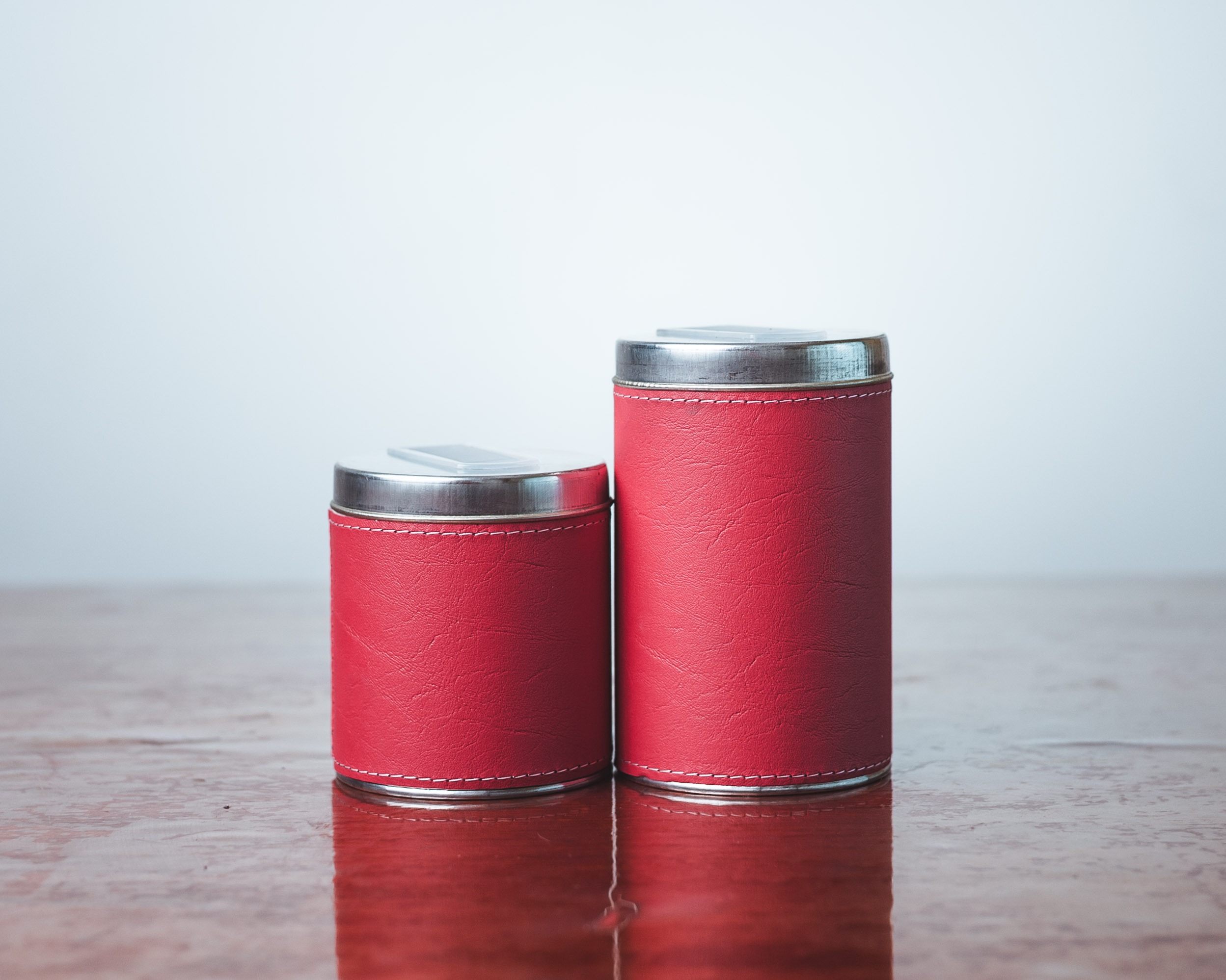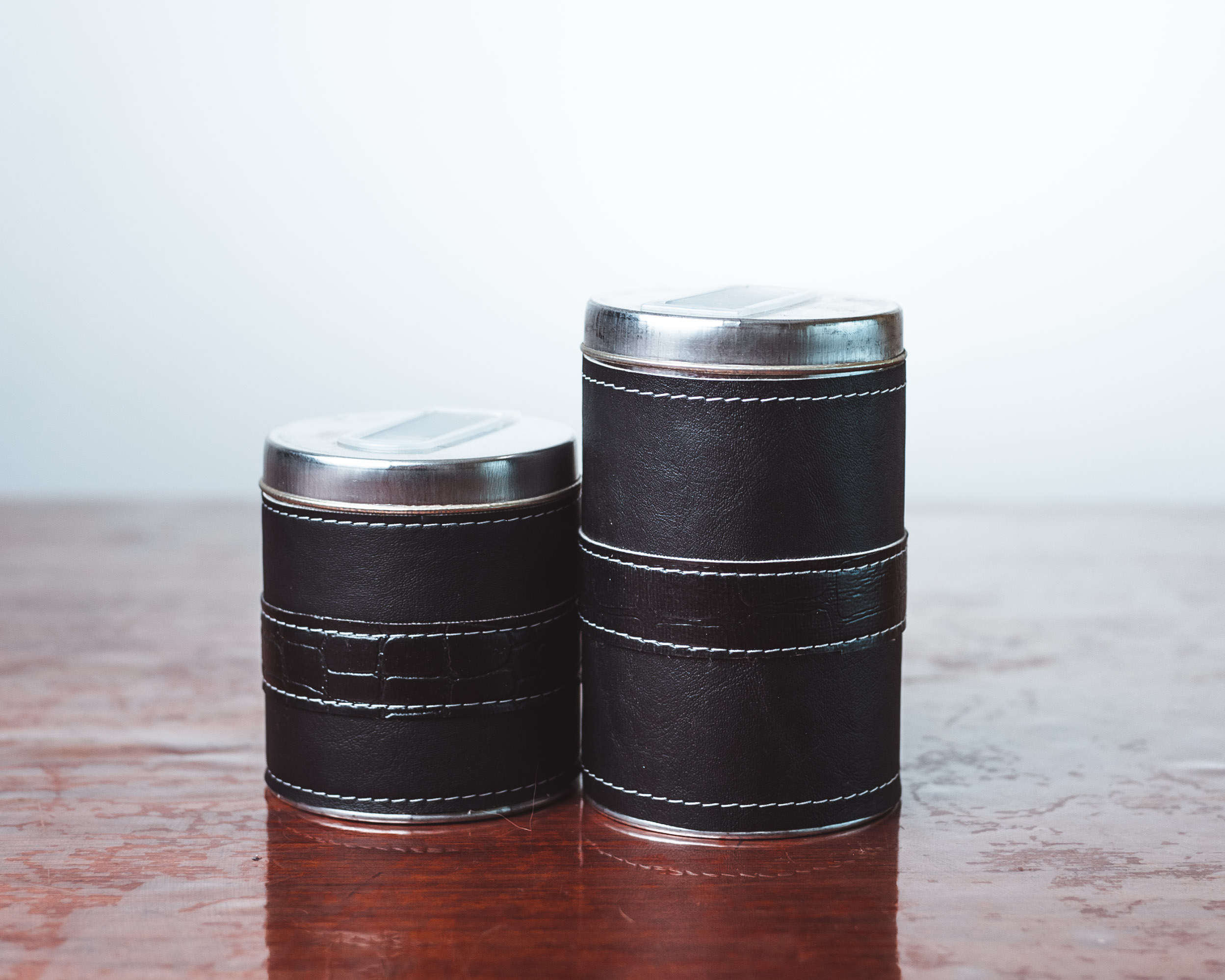 Set latas metálicas x 2 forradas en  Eco Cuero